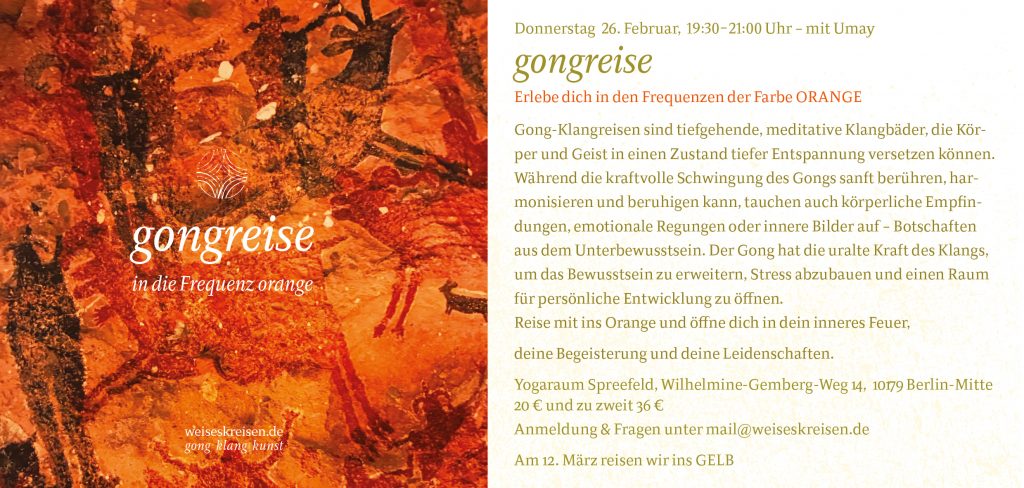 2,5 h – Gong-Session: 150 Euro + 50 € pro Person mehr